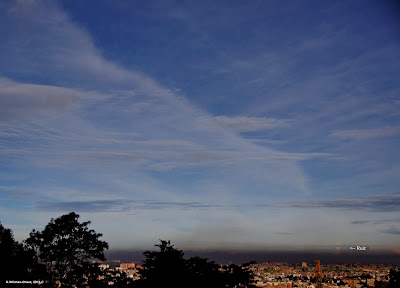 Me pregunto si esta "nube diagonal" es nube o si son gases y partículas de la fumarola que han ascendido desde el Ruiz toda la noche.